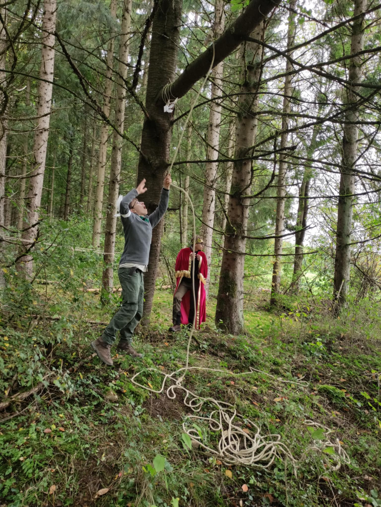 A pályát végigjárva találkoztunk további életre kelt szereplÅ‘kkel. Szent László király udvarában kardot készÃtettünk és bebizonyÃthattuk, hogy ha van nálunk valamennyi kötél és ismerünk néhány csomót, akkor nem csak össze tudunk kötözni valamit, hanem még fára is tudunk mászni egy-két csomó segÃtségével. Anonymus rejtvényét a rovásÃrás ismeretével sikerült megfejtenünk, tájékozódási képességeinkkel pedig Szent Margitot kalauzoltuk el a Nyulak-szigetérÅ‘l egészen Budaörsig a térképen.