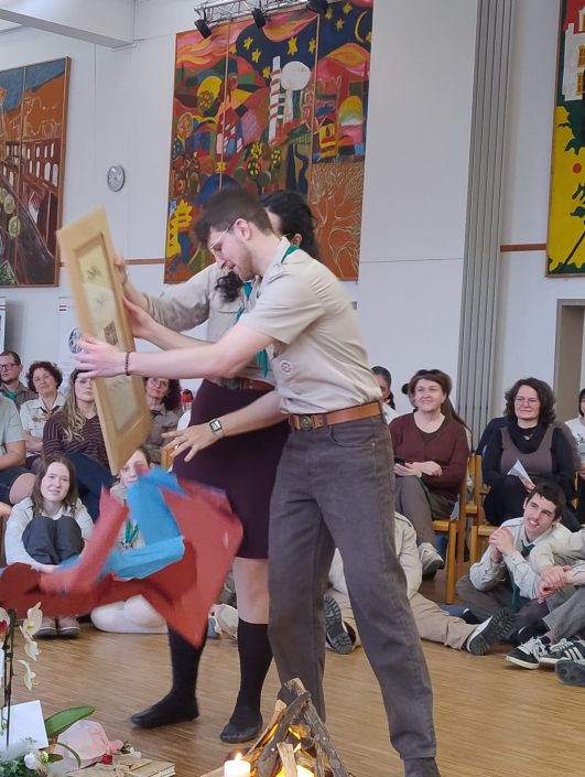 Az átadás helyszíne és hangulata hű maradt a cserkészhagyományokhoz. A tábortűz köré gyűlve megelevenedtek a múlt emlékei, miközben a közösség hálával búcsúztatta leköszönő vezetőjét. Panni tizennégy éven át tartó, lelkiismeretes munkája meghatározó korszak volt a csapat életében, így az este folyamán a sok szép közös emlék felidézése sem maradhatott el.