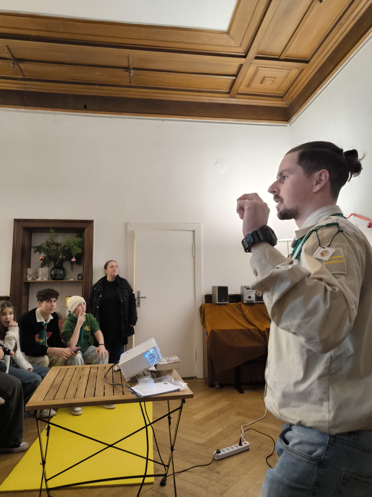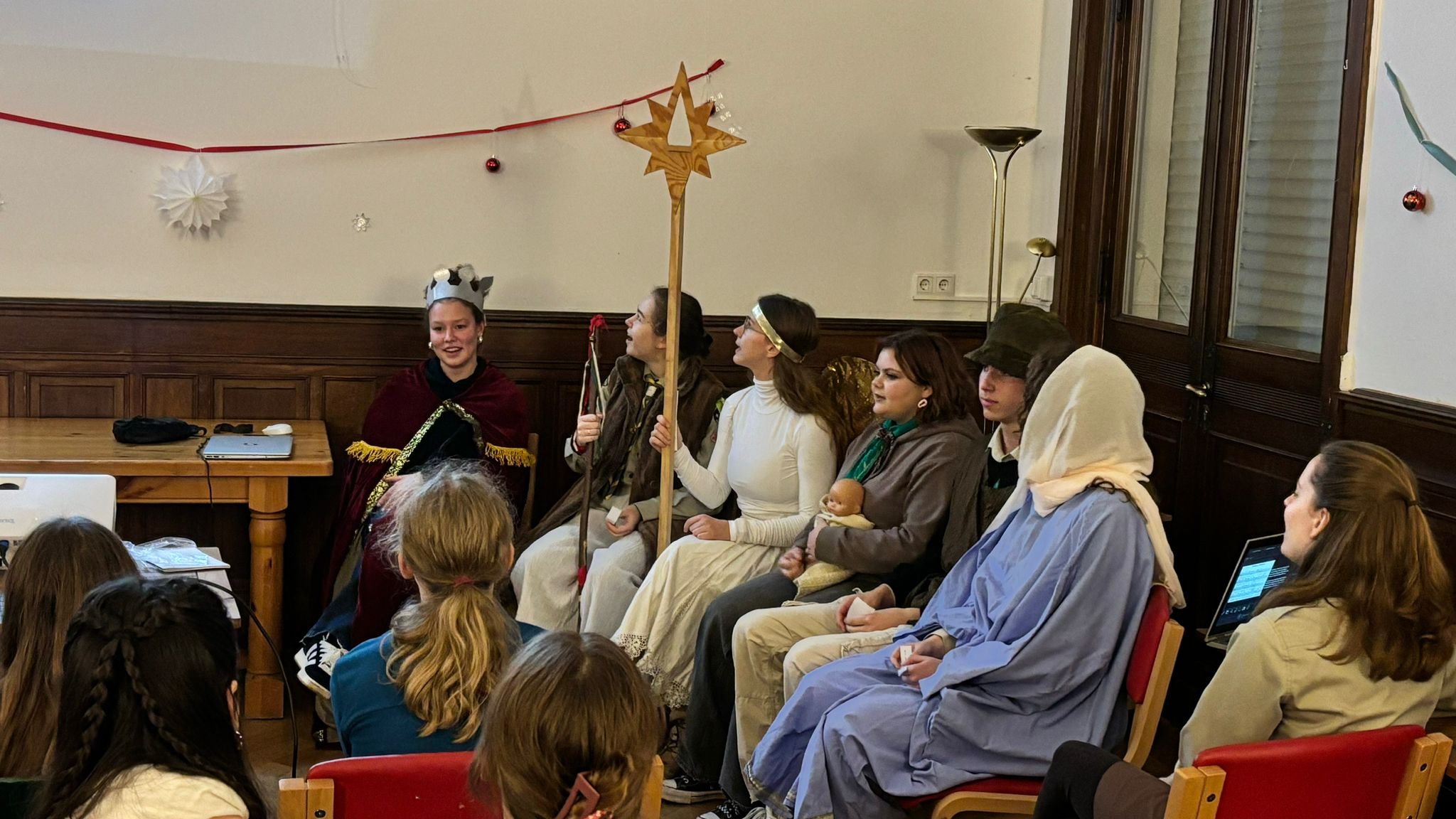 A közös éneklés után rendhagyó őrsi óra következett, ugyanis nem a megszokott őrsvezetők készültek valamivel, hanem más vezetők érkeztek hozzájuk az őrsi órára. Az őrsök a karácsonyi történet különböző részeit ismerhették meg kicsit mélyebben.