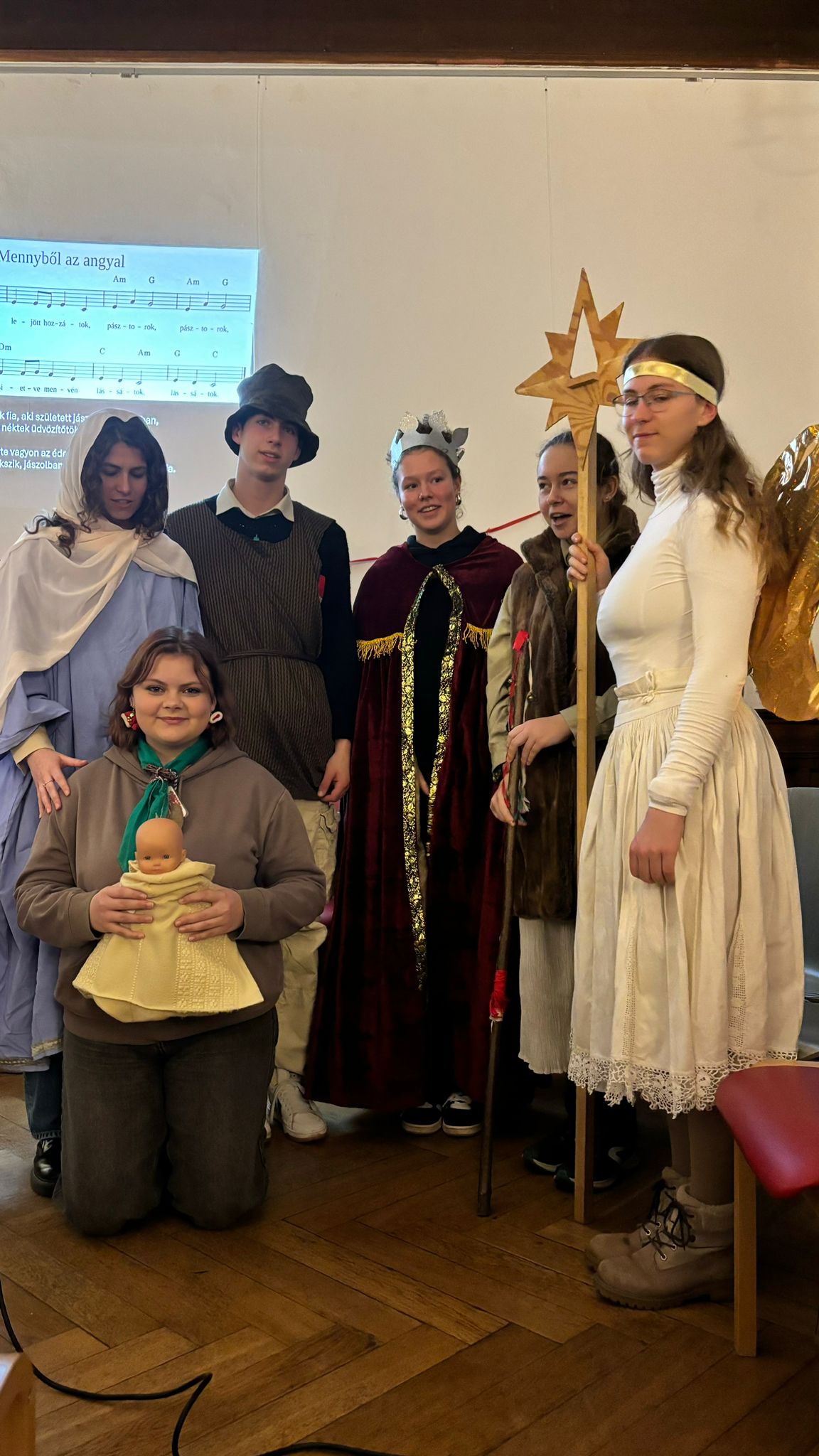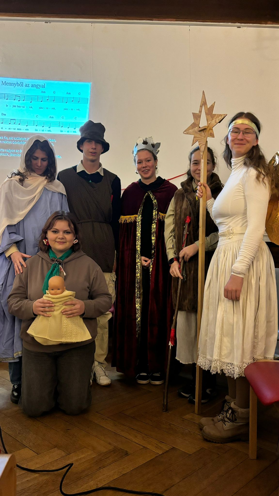 Mire vége lett az őrsi órának, megérkeztek a szülők az ünnepségre. A műsor kezdetén a vezetők elhozták magukkal a Betlehemest, ugyanis beöltöztek a szereplőknek. Az ünnepségen karácsonyi énekeket énekeltünk közösen, a betlehemes szereplői pedig egy-egy bibliai idézettel készültek. Itt adott elő a Teknős őrs is egy verset. Az egész esemény igazán meghitt, ünnepi hangulatban telt.
