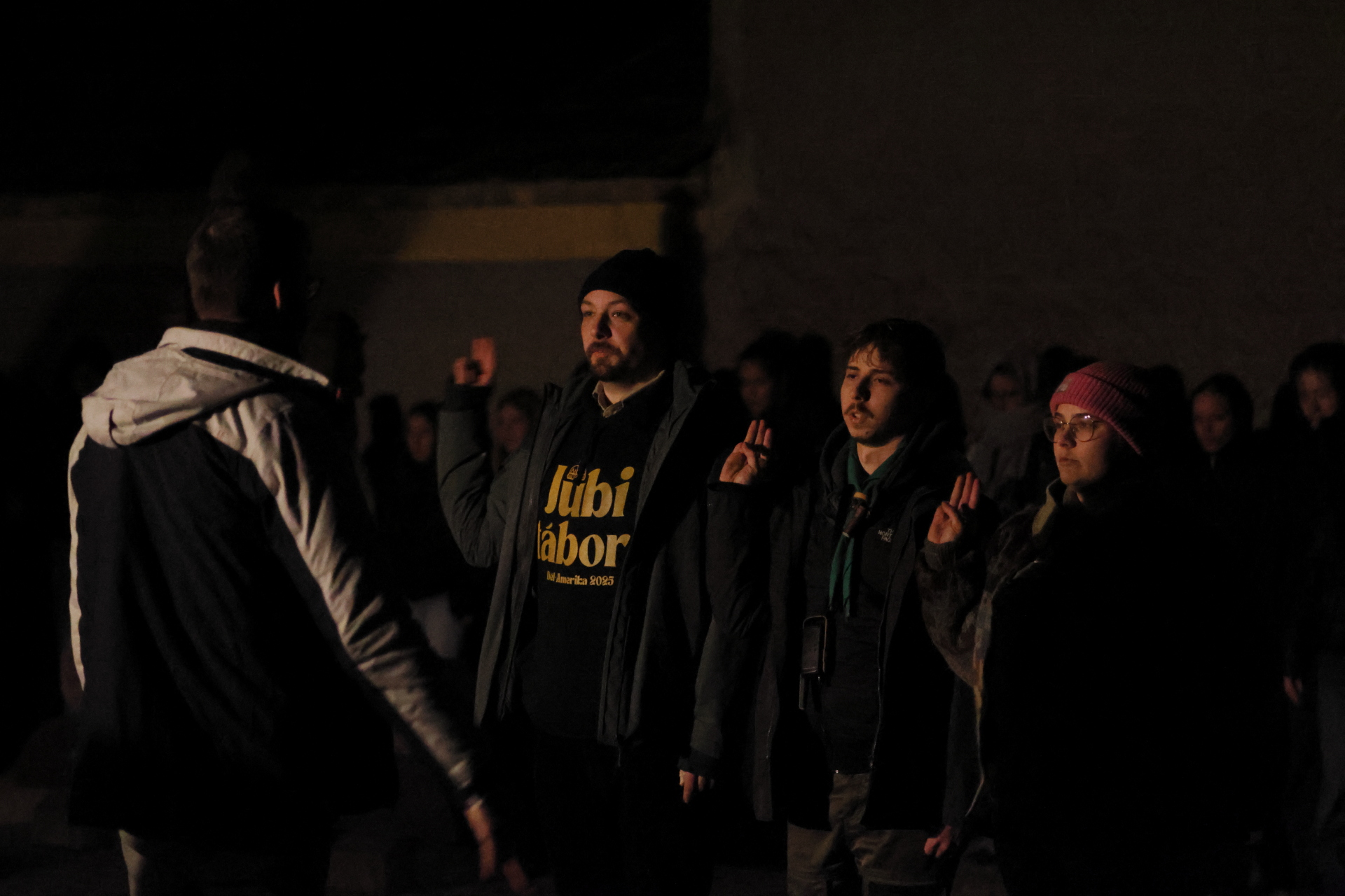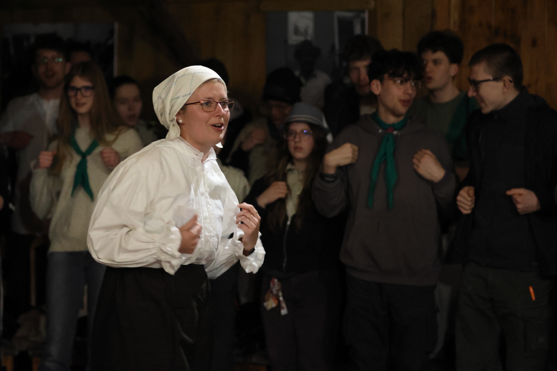 Miután felvontuk a zászlónkat, megtömtük jól a hasunkat. Következett az előadás, utána az idősebbeknek népitánc. A fiatalok dolgoztak, míg az idősebbek táncoltak.